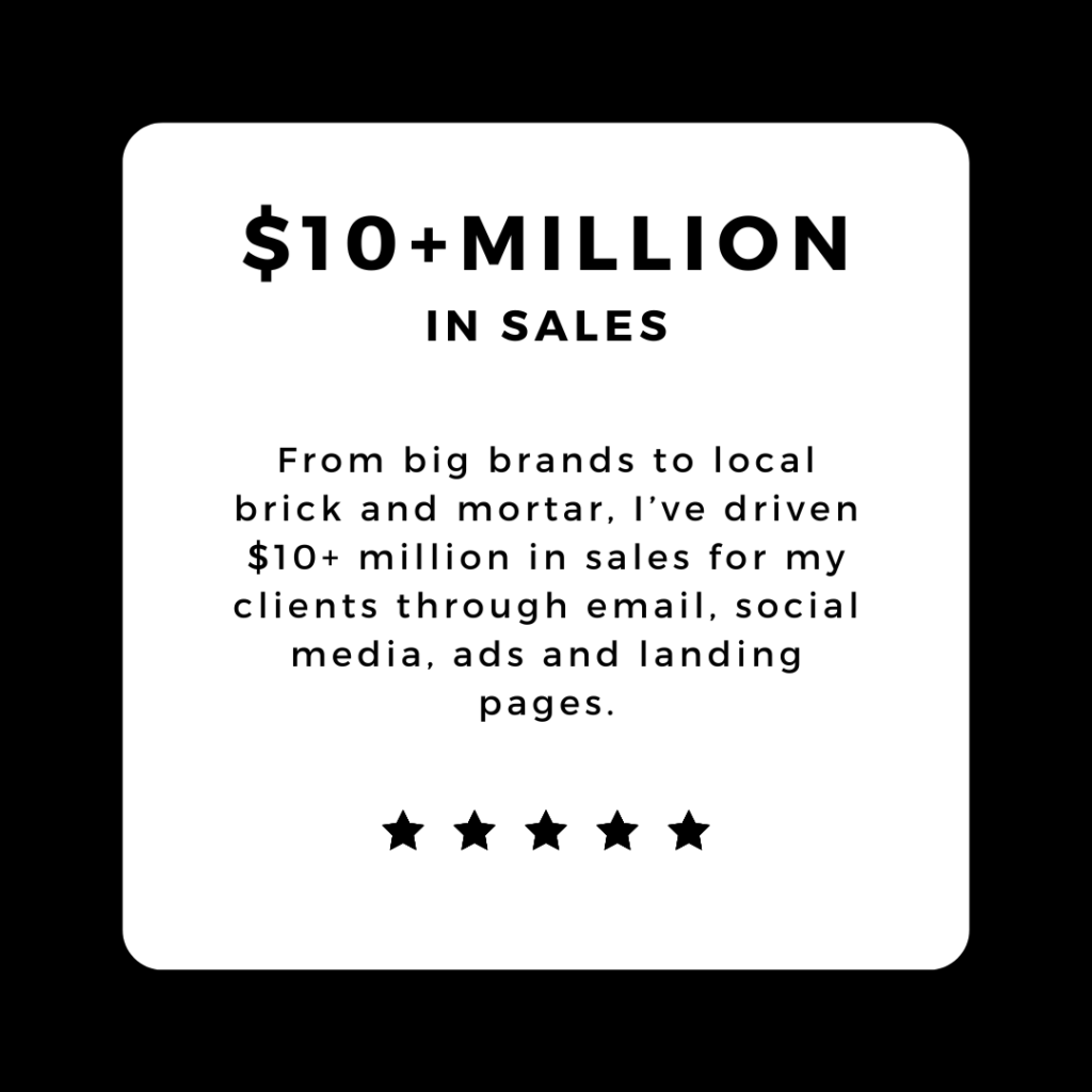 Need a Facebook ad created? Ok! Want to A/B test an email flow? No prob! Need new sales copy? Let’s go!