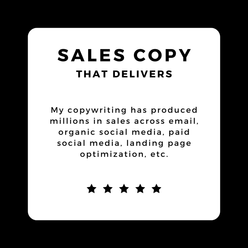 Email flows, social media post copy, social media ad copy, sales copy, brochure copy, landing page copy, blog copy and more!